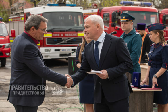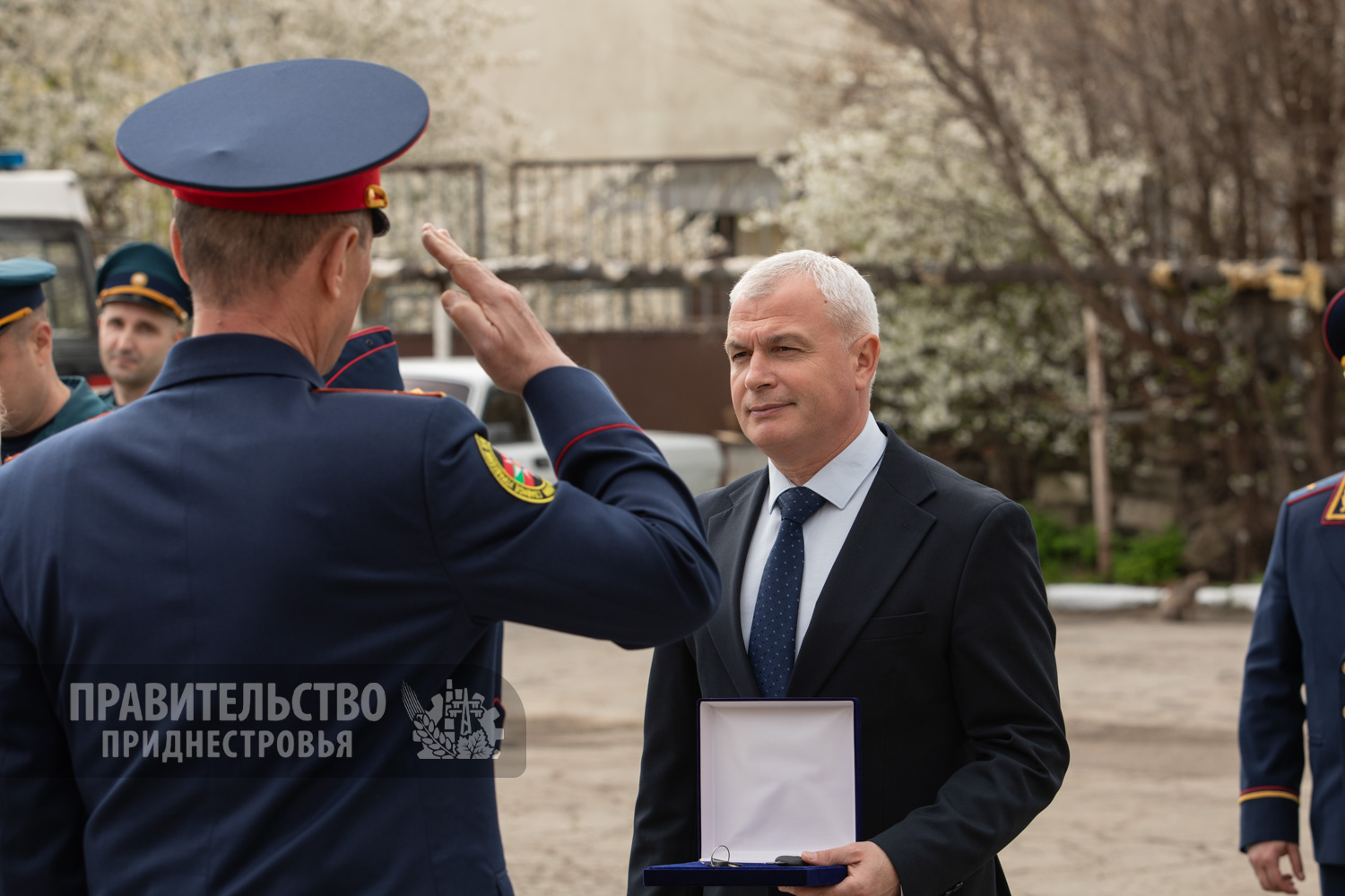 Поздравить личный состав подразделения прибыл заместитель Председателя Правительства Виталий Нягу. Он передал приветственный адрес от имени Главы высшего органа исполнительной власти Александра Розенберга. В тексте поздравления отмечено, что во все времена пожарная охрана была надежным щитом для общества и национального достояния. За каждым выездом стоит мужество и высокий профессионализм, который позволяет огнеборцам достойно выполнять свои трудовые обязанности.